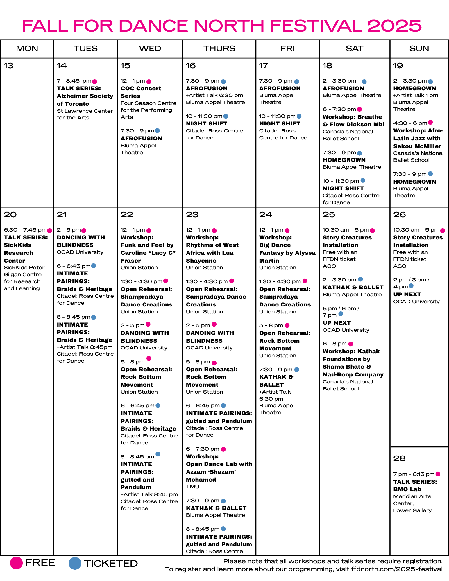 We respectfully acknowledge the sacred land on which Fall for Dance North operates, and upon which our events and activities take place. It has been a site of human activity for over 15,000 years and it is the traditional territory of the Wendat, the Haudenosaunee, the Anishinaabe, and most recently, the Mississaugas of the Credit, in addition to other peoples, both named and unnamed. Today, the meeting place of Tkaronto is still home to many Indigenous peoples from across Turtle Island and we are grateful to have the opportunity to work in this community, and on this territory.